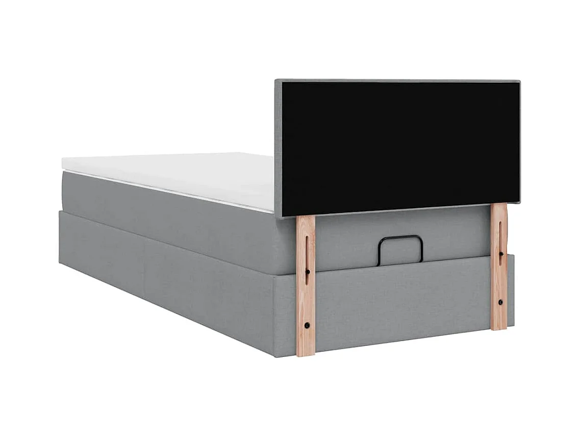 Cadre de lit ottoman et matelas gris clair 90x200 cm tissu