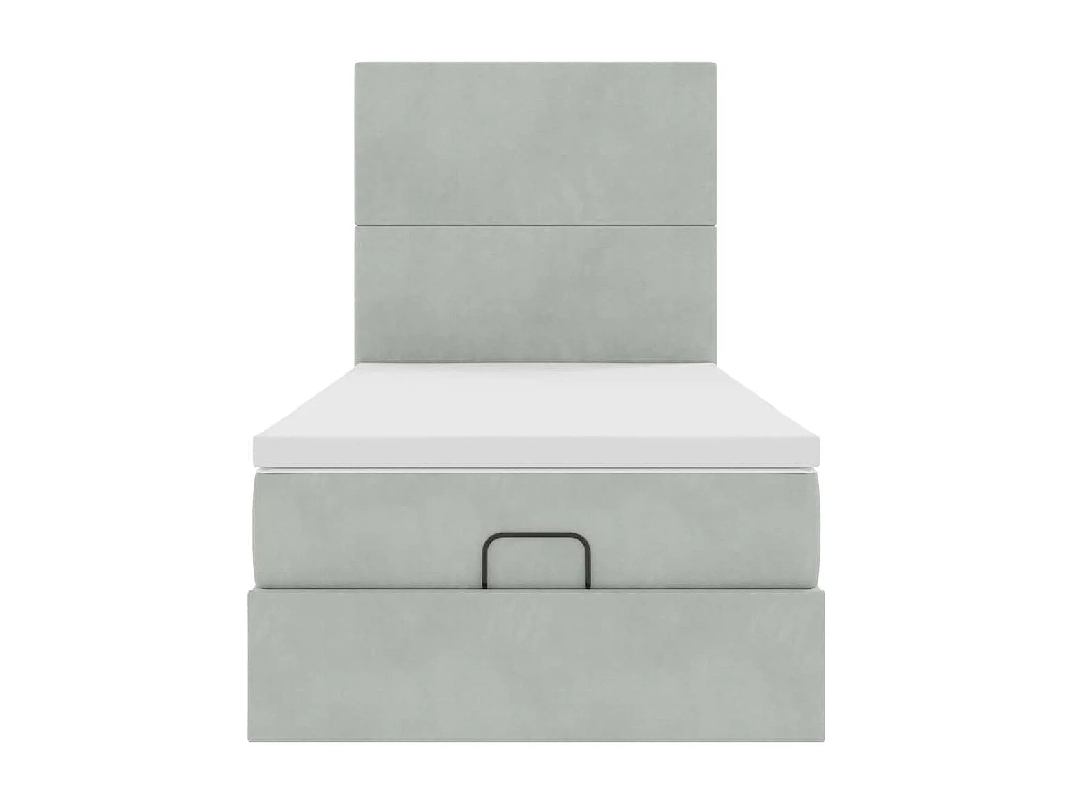 Cadre de lit ottoman et matelas gris clair 90x200 cm velours