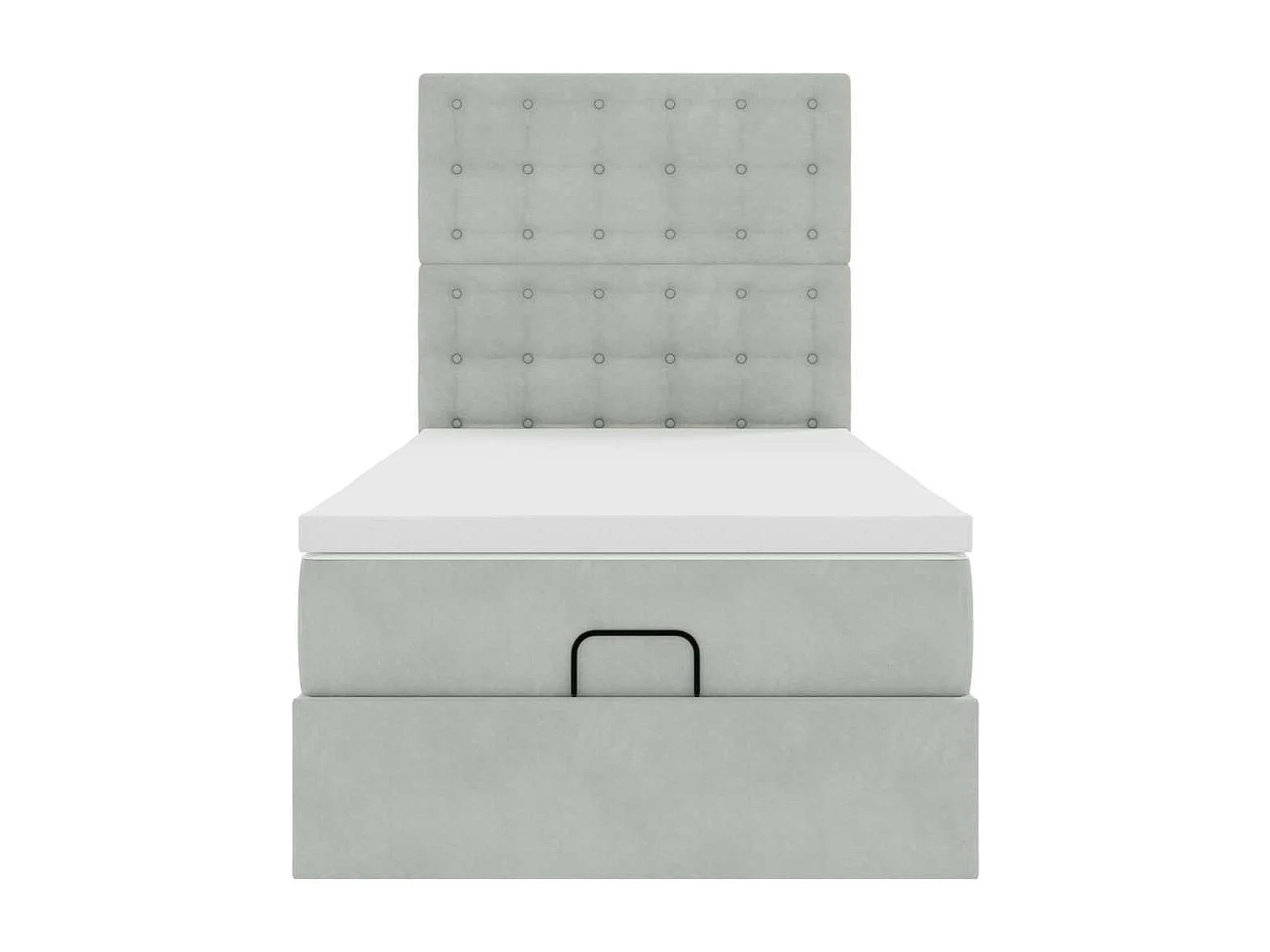 Cadre de lit ottoman et matelas gris clair 90x200 cm velours