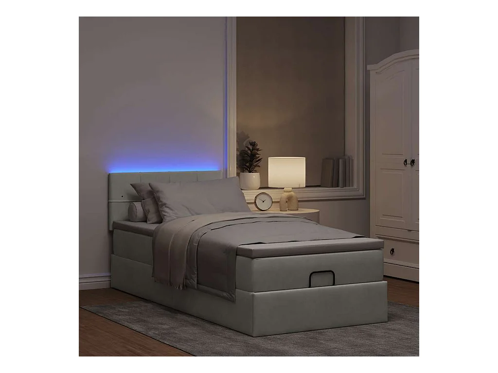 Cadre de lit ottoman et matelas gris clair 90x200 cm velours