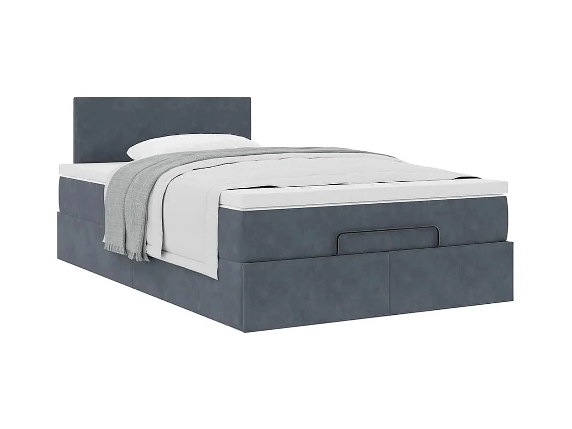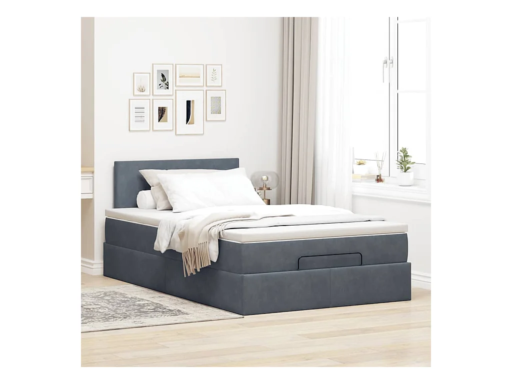 Cadre de lit ottoman et matelas gris foncé 120x200 cm velours