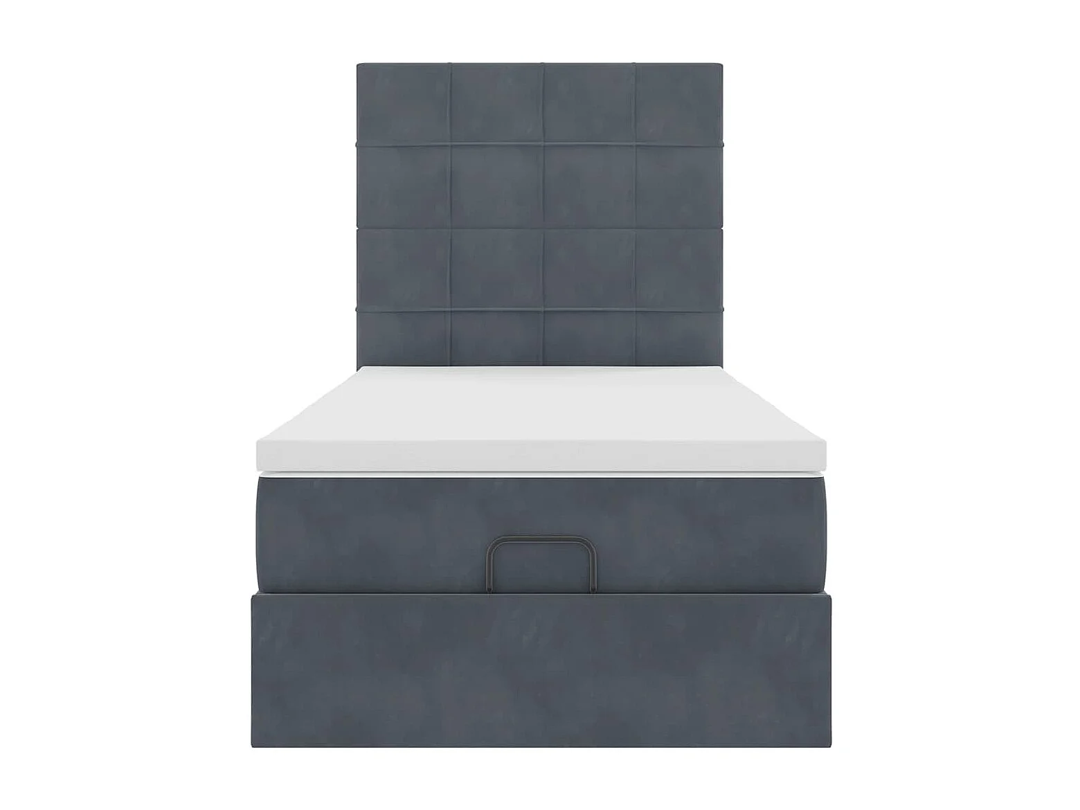 Cadre de lit ottoman et matelas gris foncé 90x200 cm velours