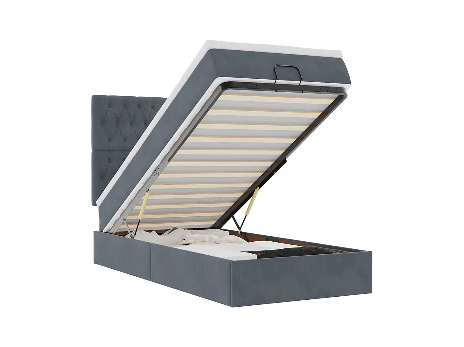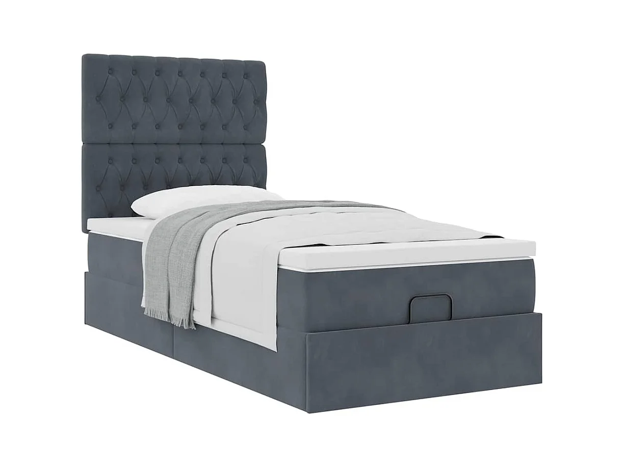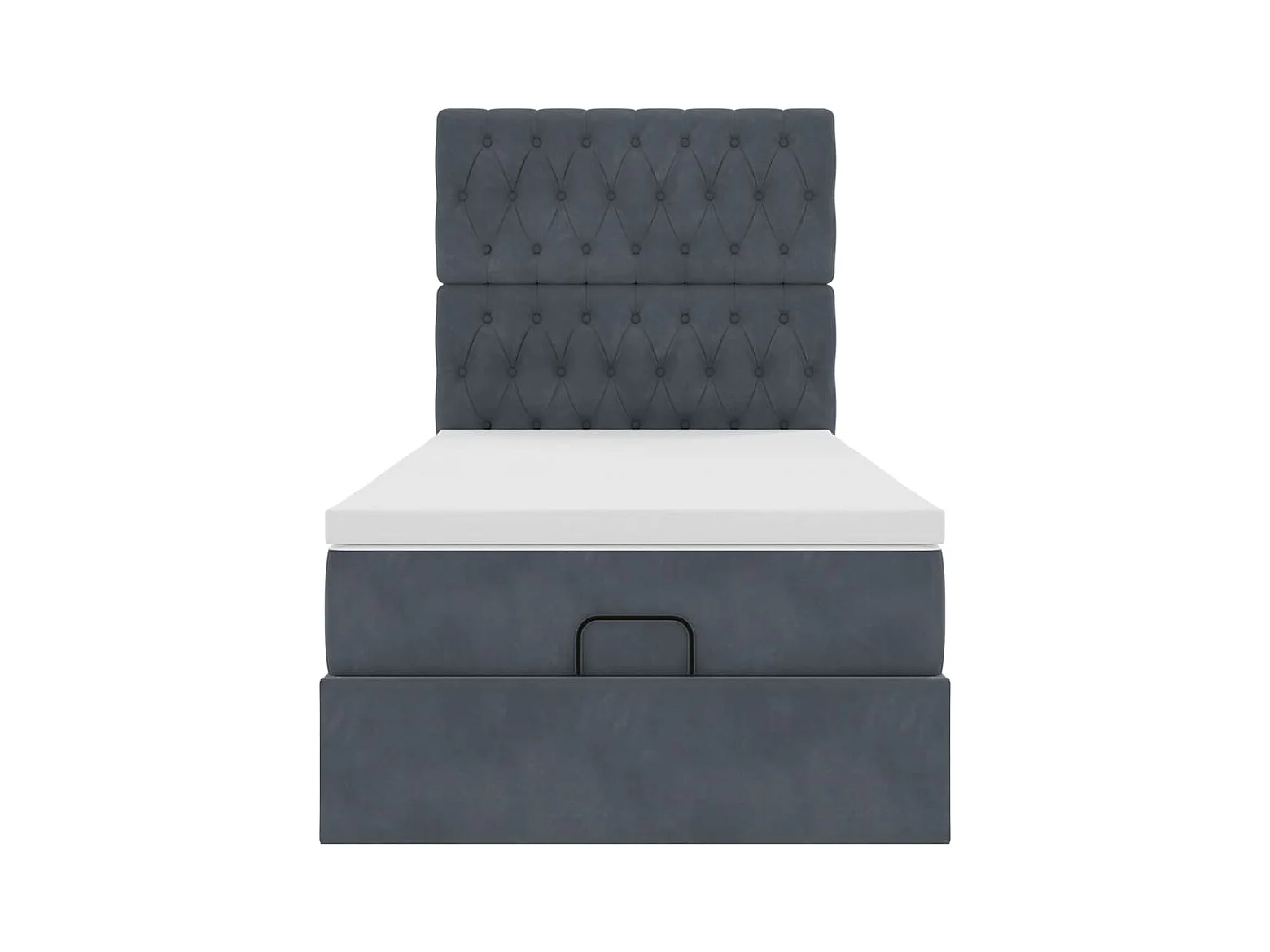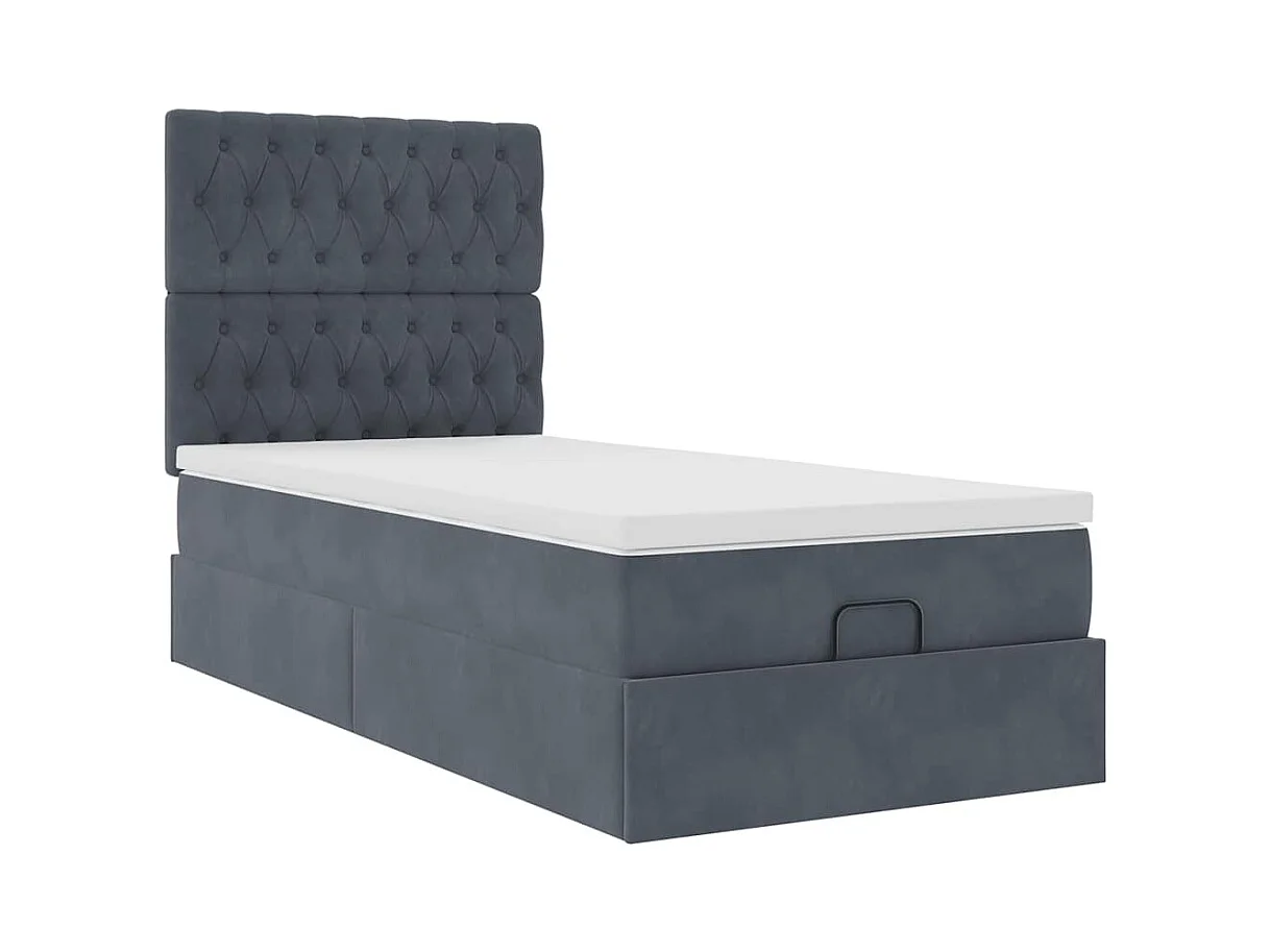 Cadre de lit ottoman et matelas gris foncé 90x200 cm velours