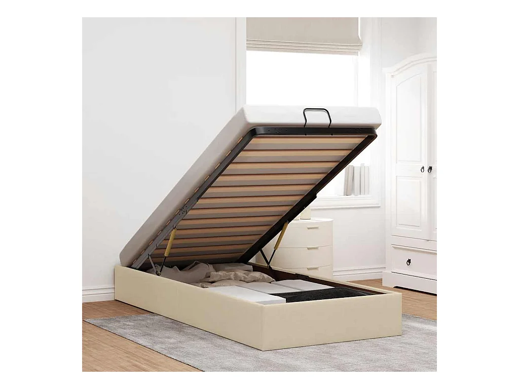 Cadre de lit ottoman avec matelas crème 80x200 cm tissu
