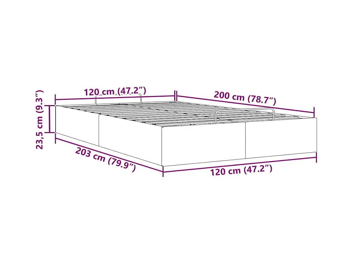 Cadre de lit ottoman sans matelas gris 120x200 cm similicuir