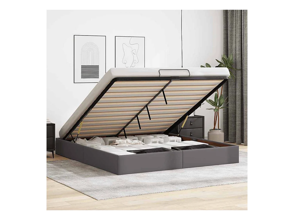 Cadre de lit ottoman sans matelas gris 200x200 cm similicuir