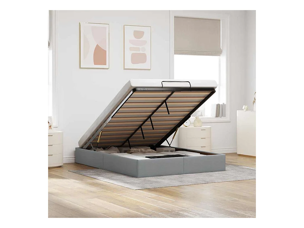 Cadre de lit ottoman sans matelas gris clair 140x190 cm tissu