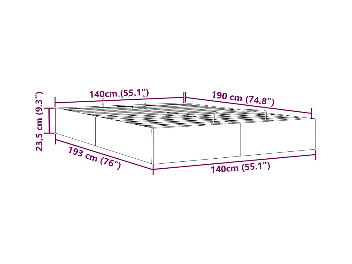 Cadre de lit sans matelas sonoma gris 140x190 cm
