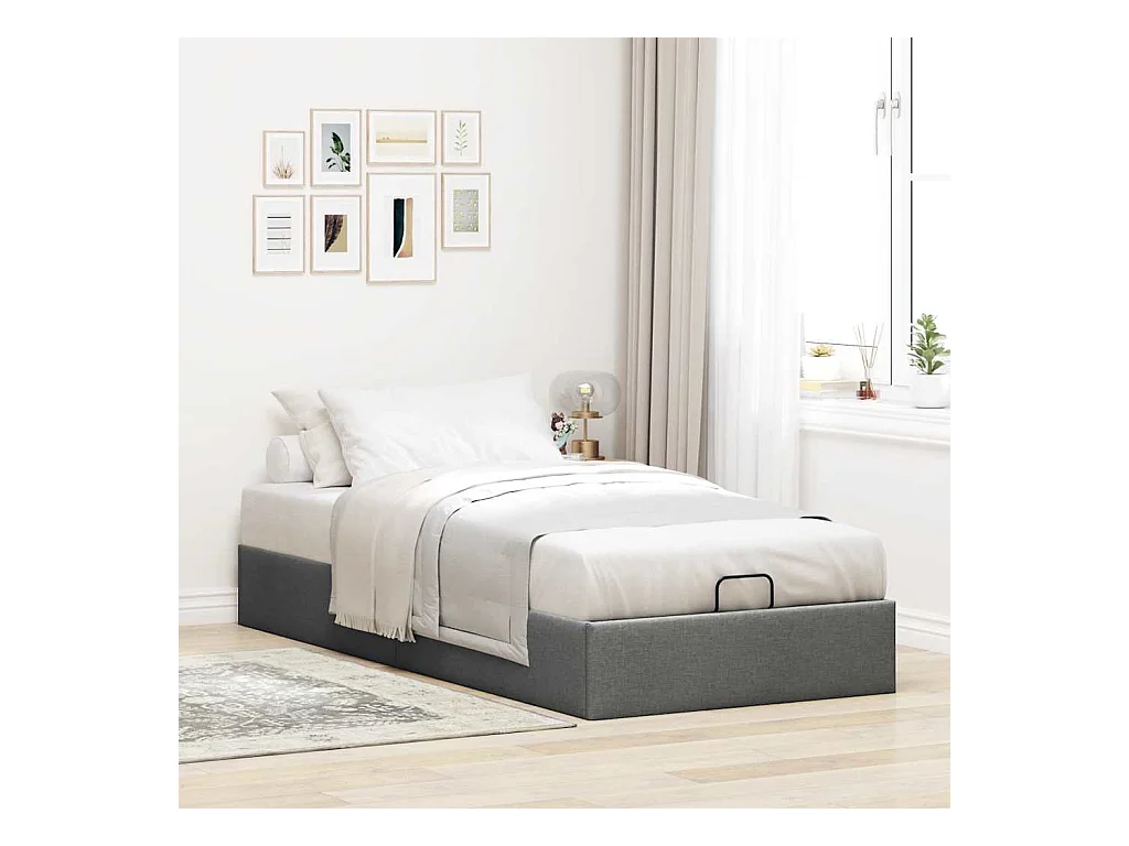 Cadre de lit ottoman sans matelas gris foncé 100x200 cm tissu