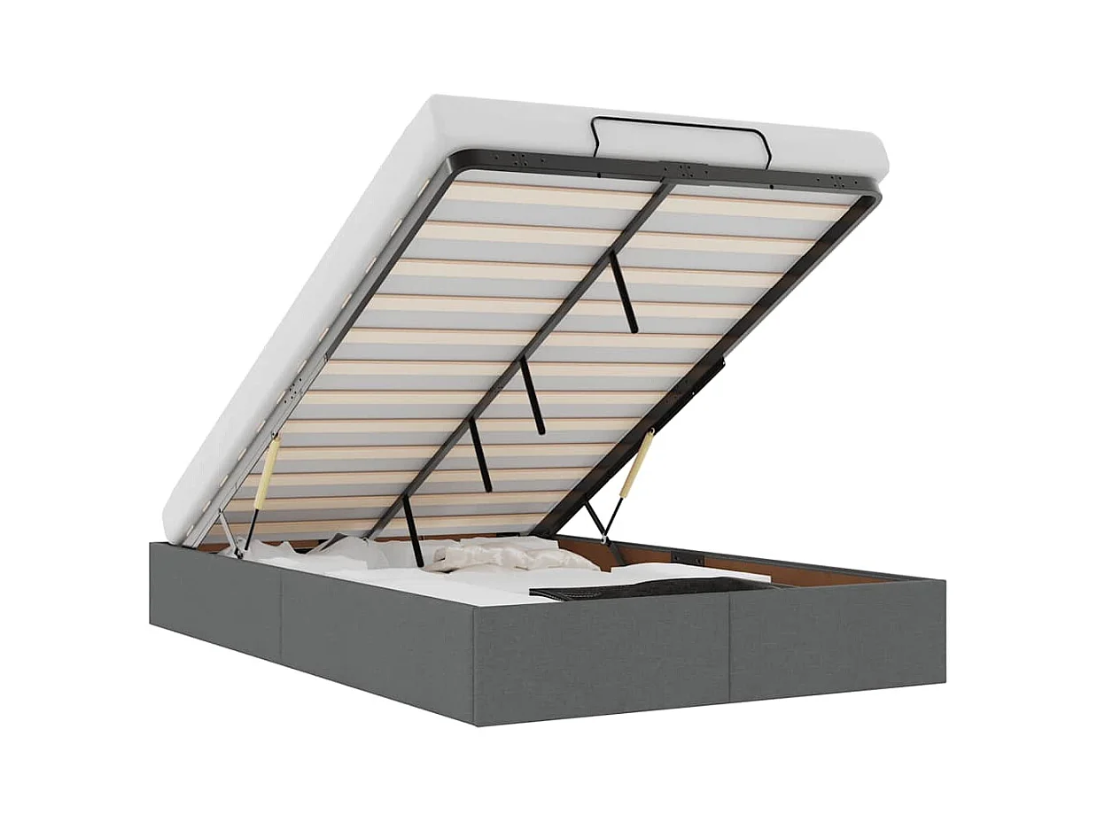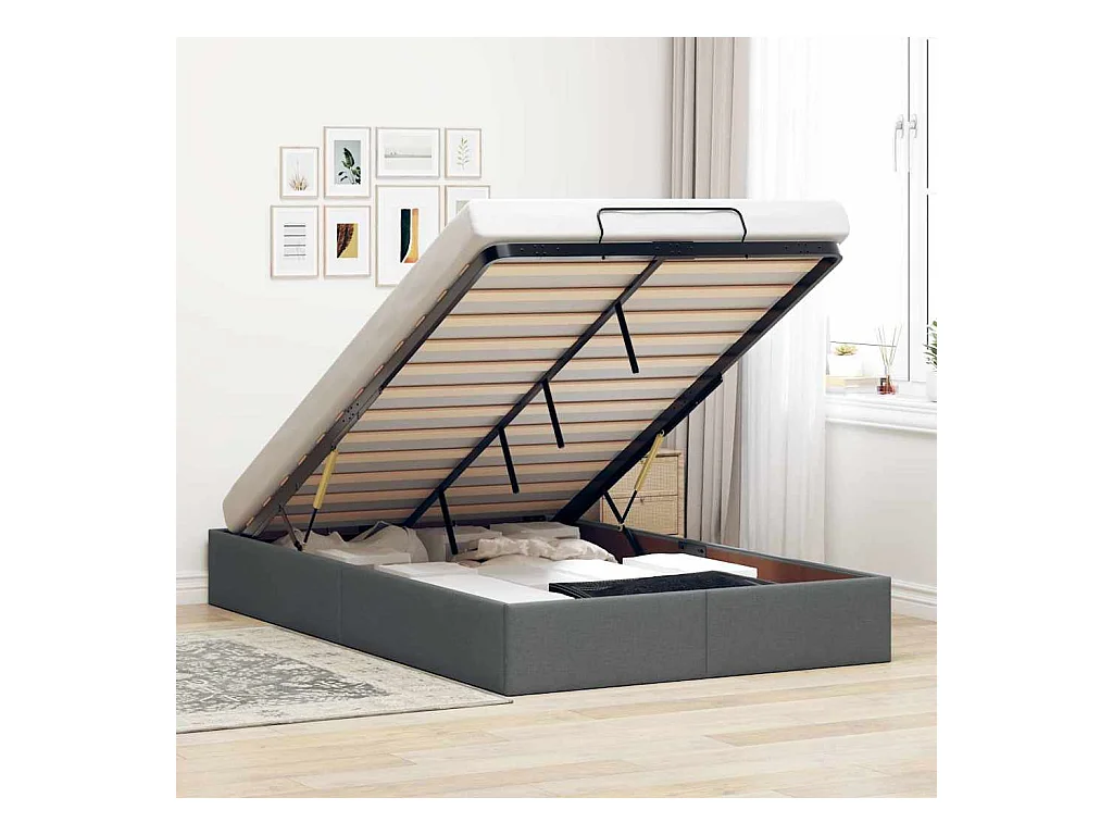 Cadre de lit ottoman sans matelas gris foncé 120x200 cm tissu