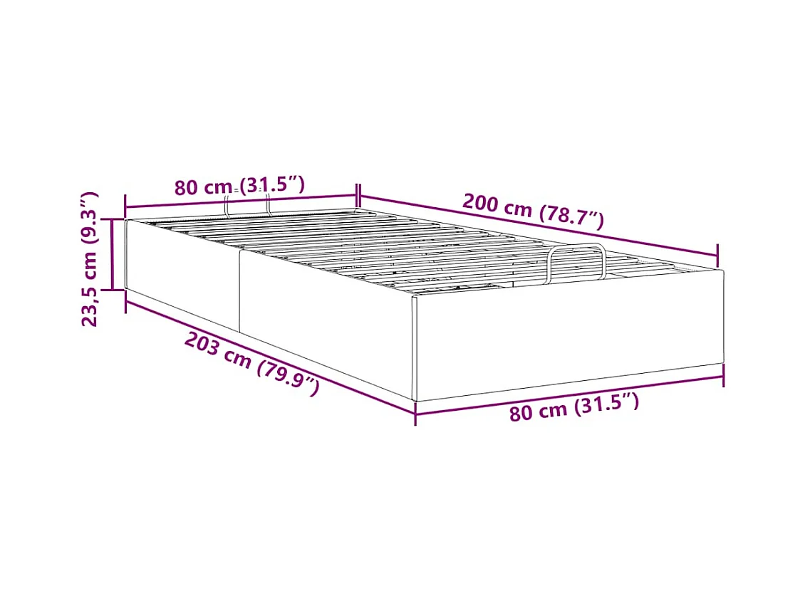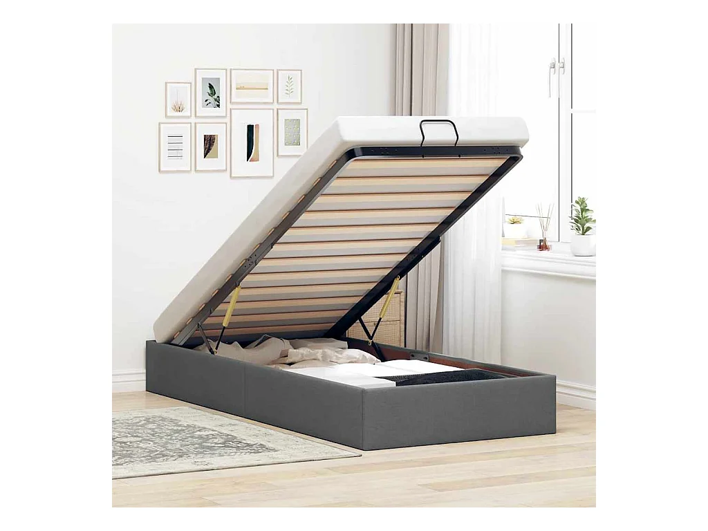 Cadre de lit ottoman sans matelas gris foncé 80x200 cm tissu