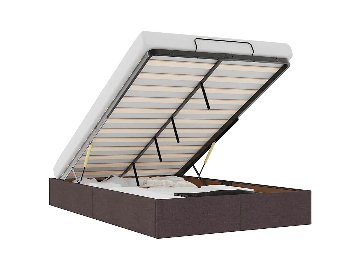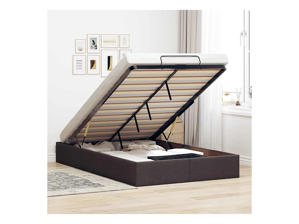Cadre de lit ottoman sans matelas marron foncé 120x190 cm tissu