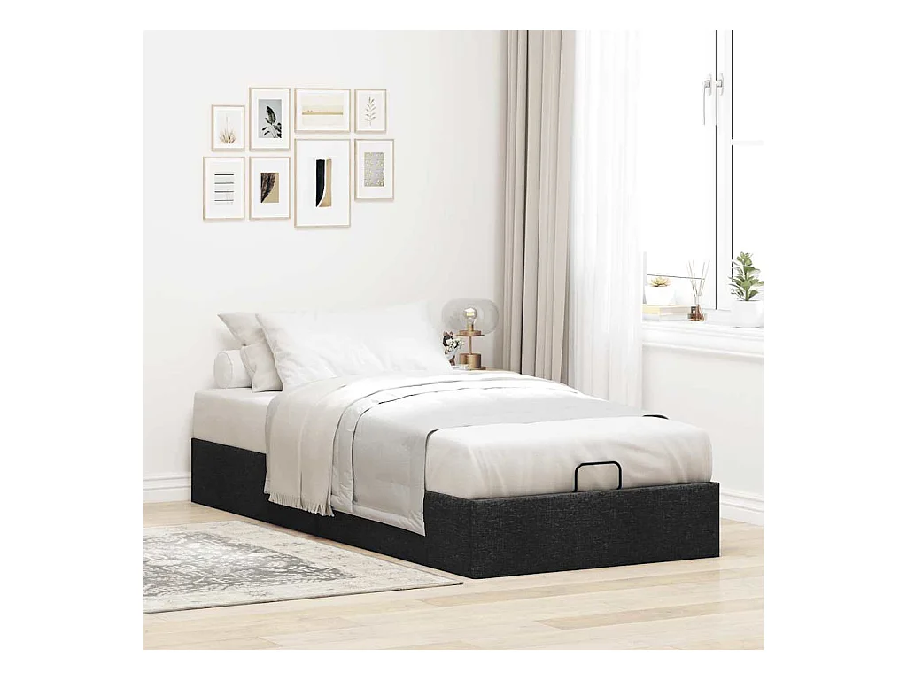 Cadre de lit ottoman sans matelas noir 80x200 cm tissu
