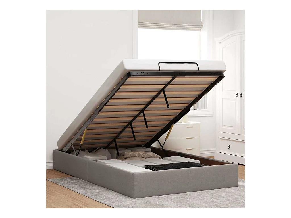 Cadre de lit ottoman avec matelas taupe 120x190 cm tissu