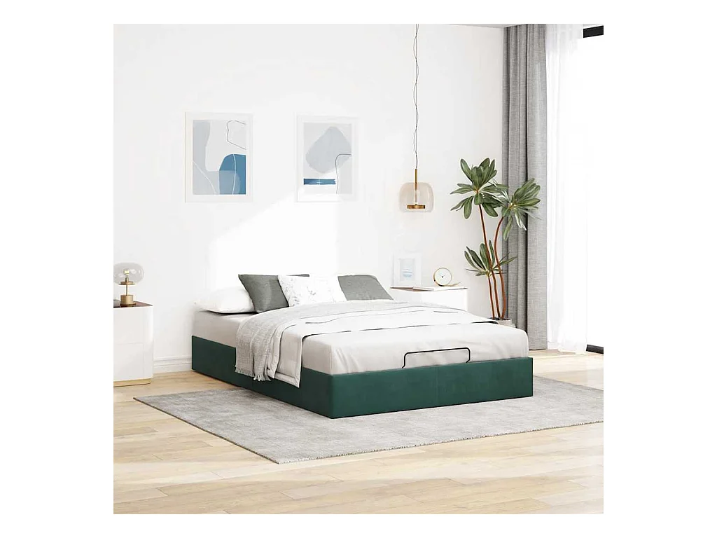 Cadre de lit ottoman sans matelas vert foncé 140x200 cm velours
