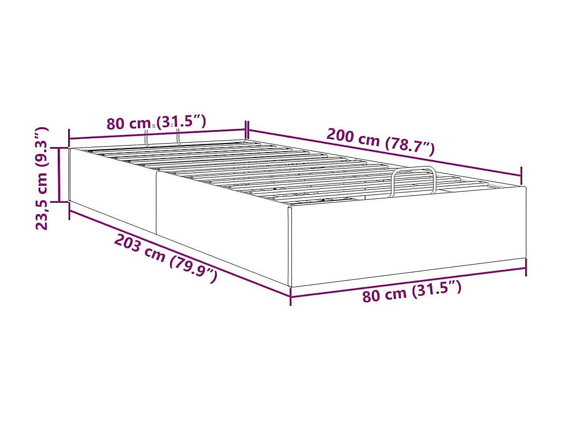Cadre de lit ottoman sans matelas vert foncé 80x200 cm velours