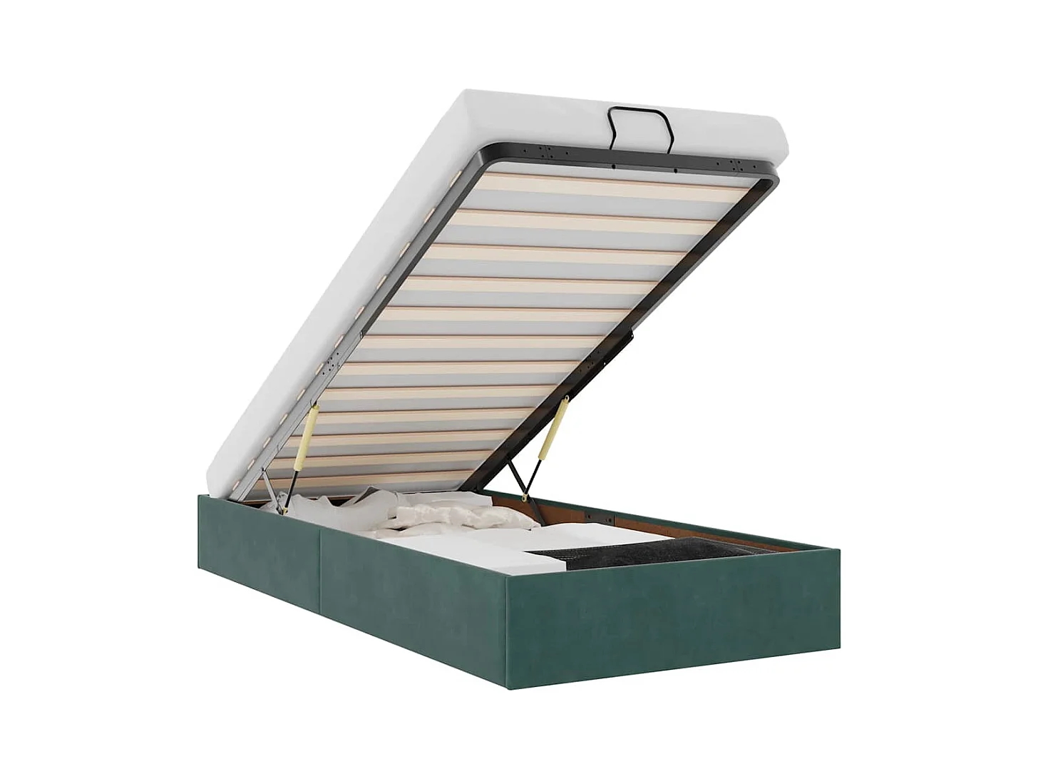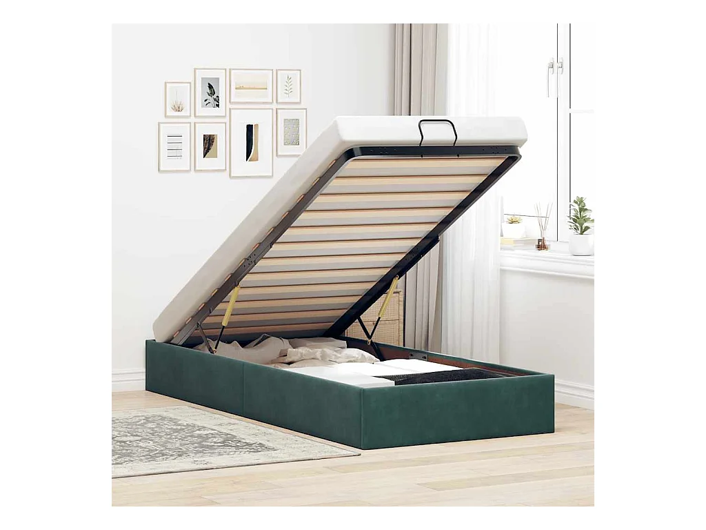 Cadre de lit ottoman sans matelas vert foncé 90x200 cm velours