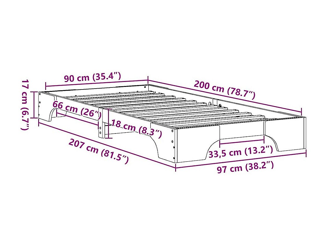 Cadre de lit Pin massif 90 x 200 cm Bois massif en pin