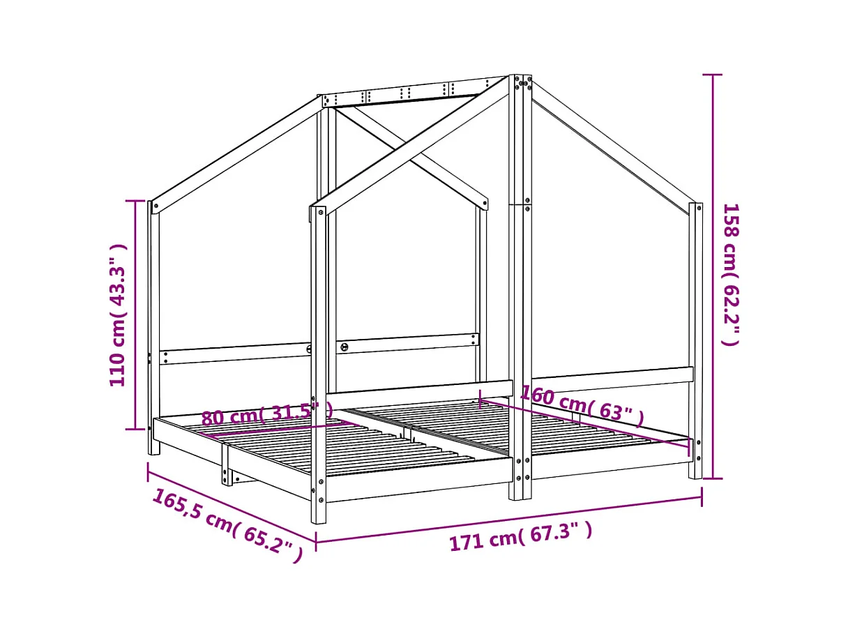 Cadre de lit pour enfant blanc 2x(80x160) cm bois de pin massif