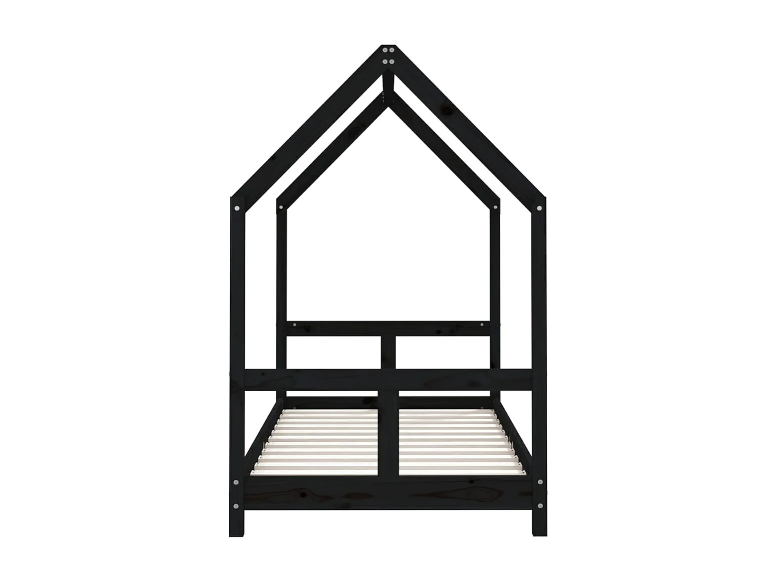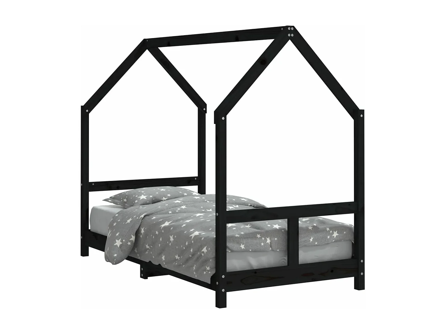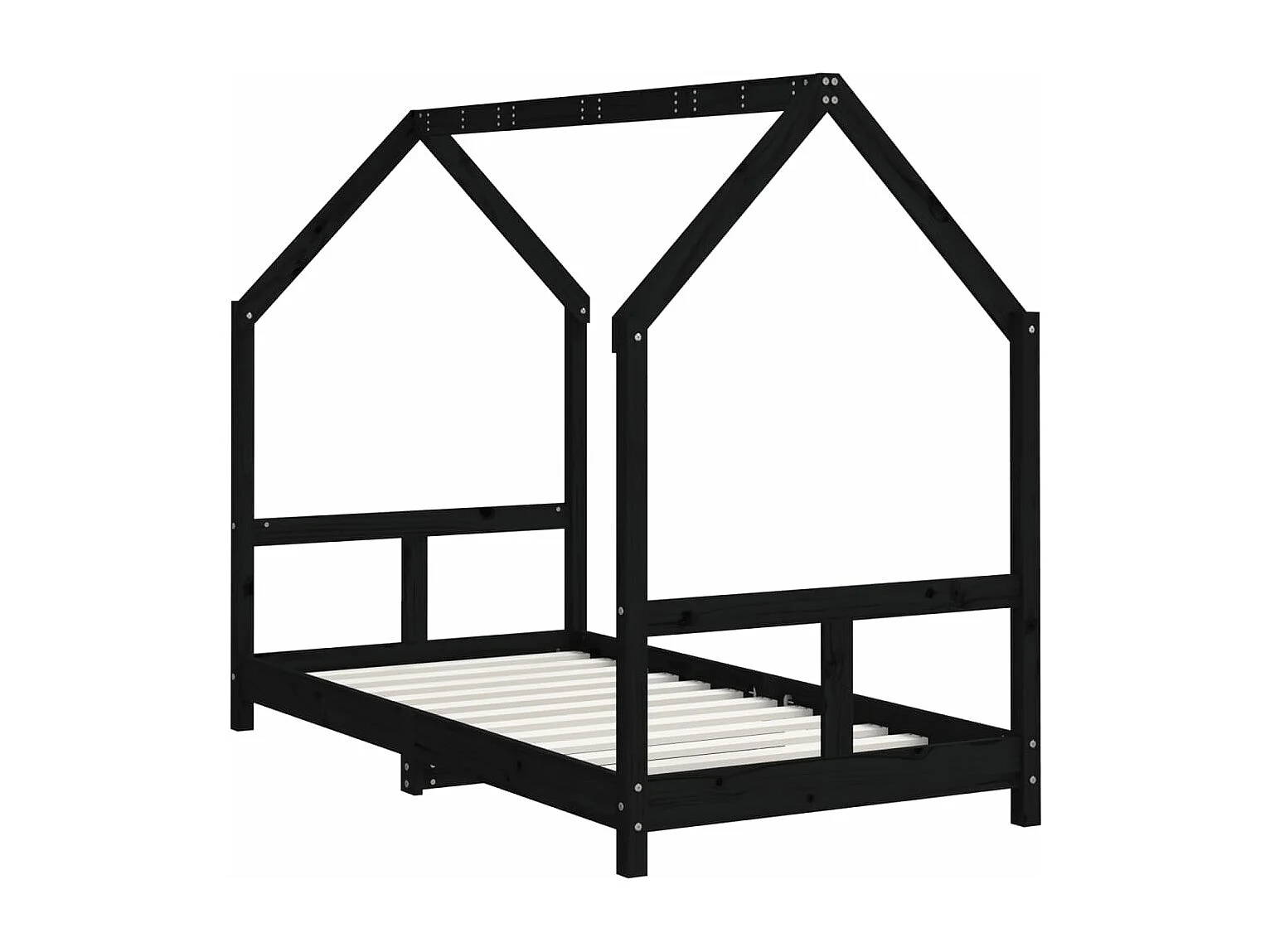 Cadre de lit pour enfant noir 80x160 bois de pin massif
