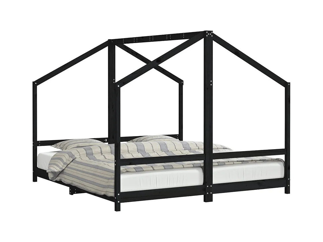 Cadre de lit pour enfants noir 2x(90x200) cm bois de pin massif