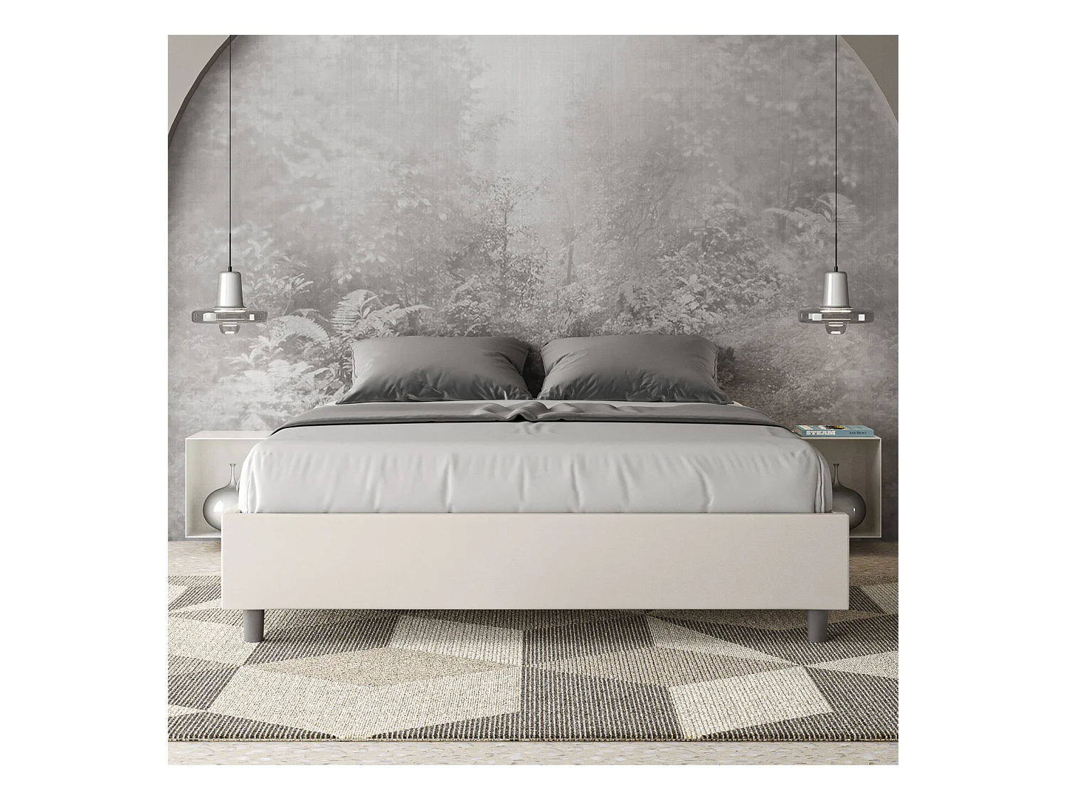 Lit avec sommier rembourrée 160x190 similicuir blanc Azelia
