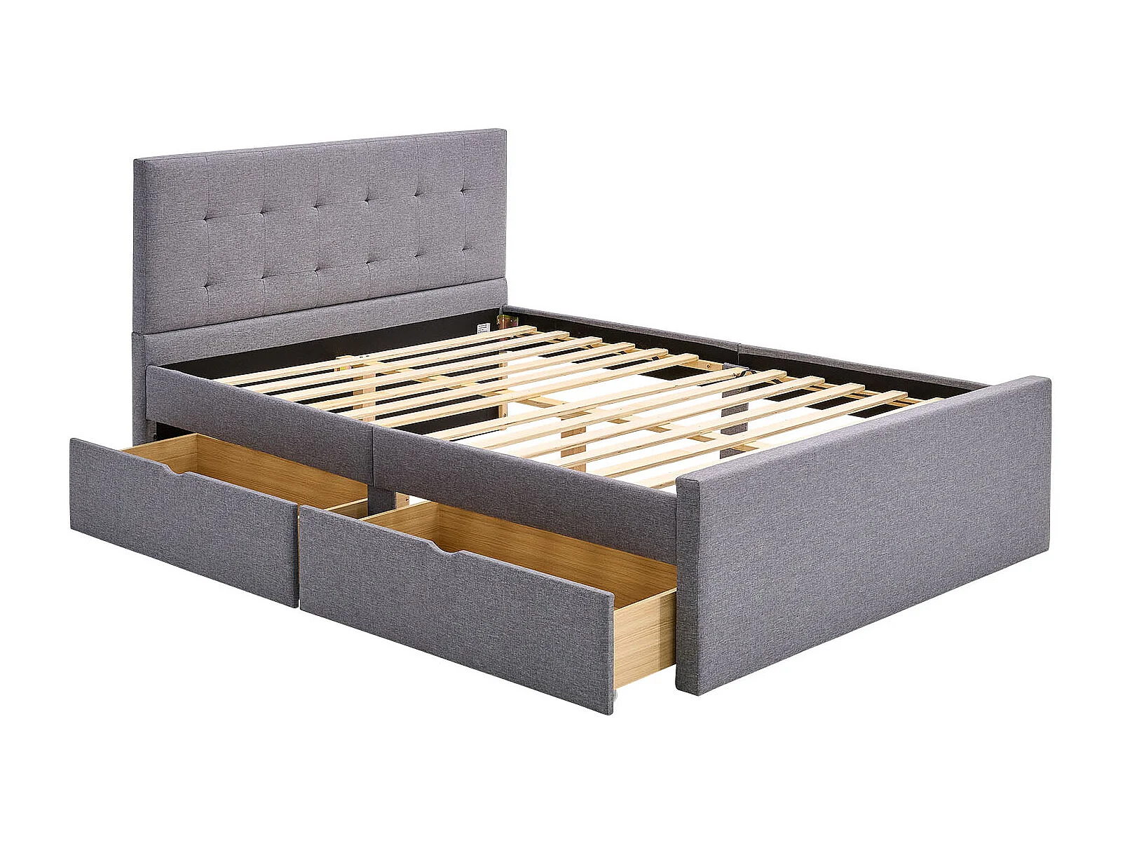 Cadre de lit avec tiroirs sans matelas gris béton 120x200 cm