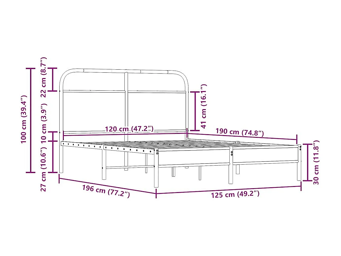 Cadre de lit avec tête de lit sans matelas 120x190 cm
