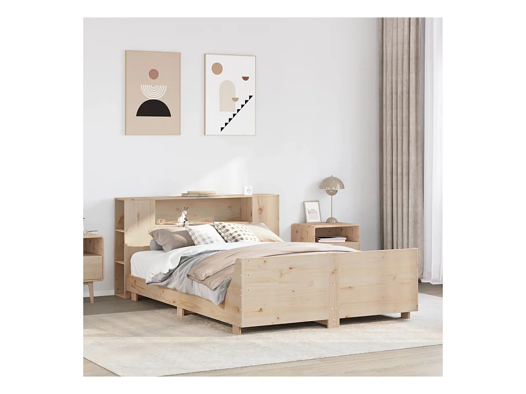 Lit bibliothèque sans matelas 120x200 cm bois de pin massif