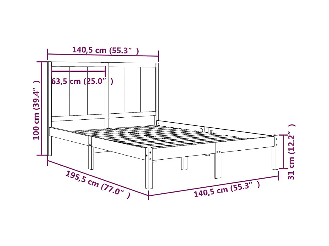 Cadre de lit sans matelas 135x190 cm bois de pin massif