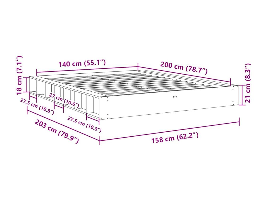 Cadre de lit sans matelas 140x200 cm bois massif de chêne