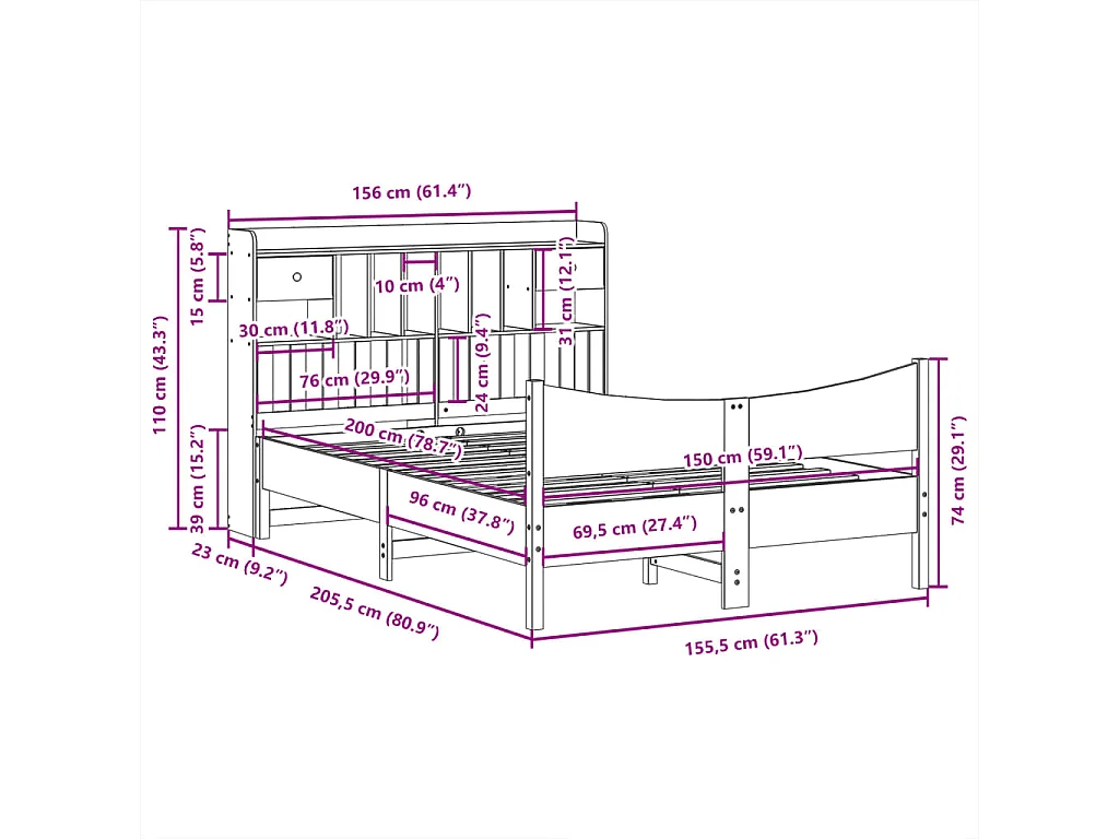 Cadre de lit sans matelas 150x200 cm bois de pin massif