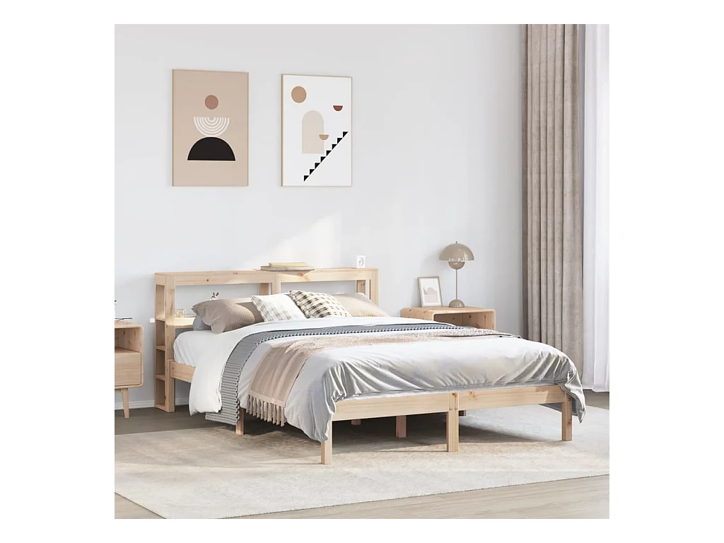 Lit bibliothèque sans matelas 150x200 cm bois massif de pin