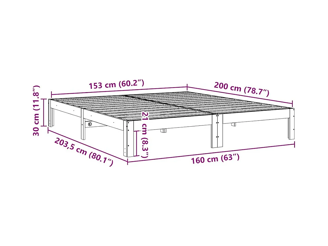 Cadre de lit sans matelas 160x200 cm bois massif de pin