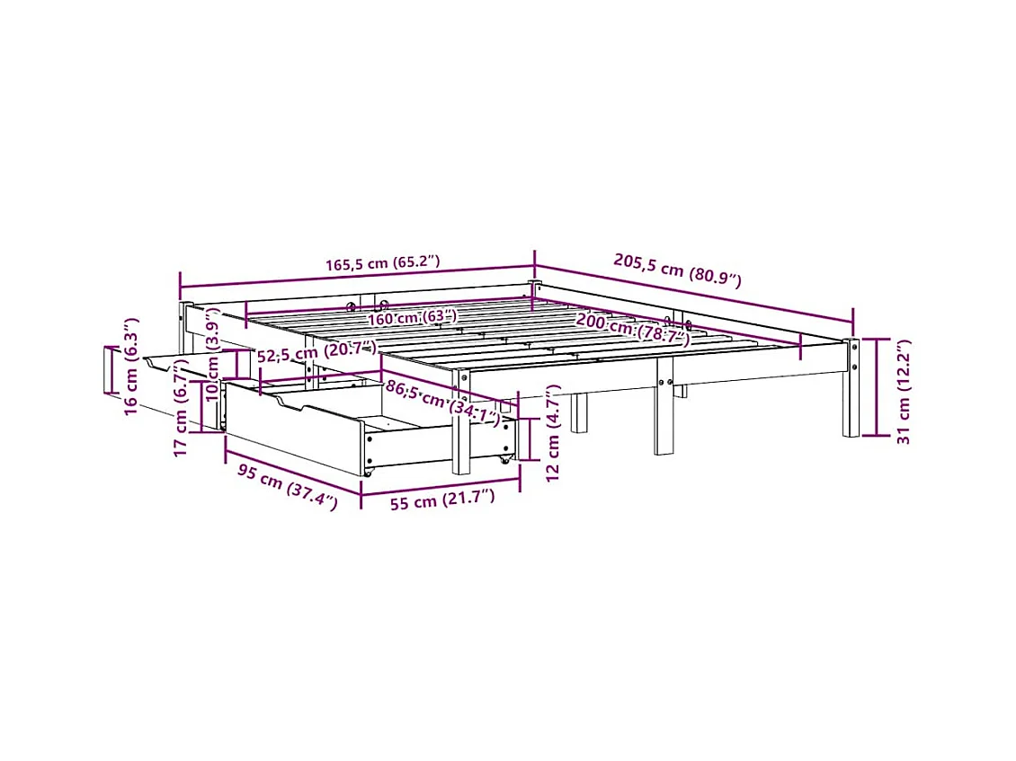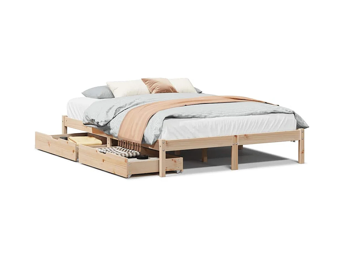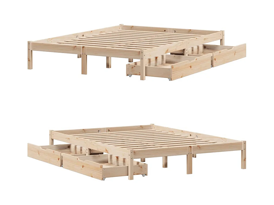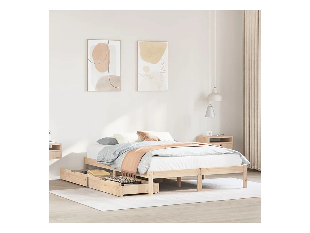 Cadre de lit avec tiroirs 160x200 cm bois massif de pin
