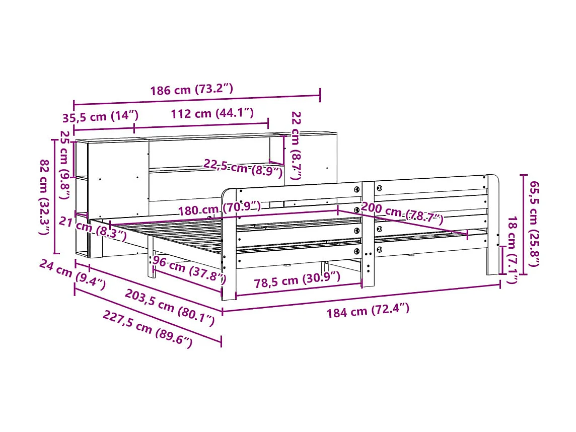 Cadre de lit sans matelas 180x200 cm bois massif de pin