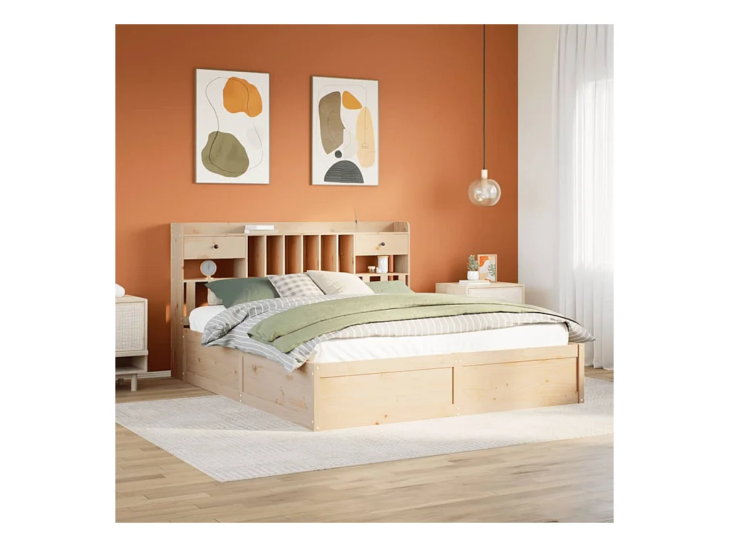 Cadre de lit sans matelas avec tiroirs brun cire 180x200 cm pin