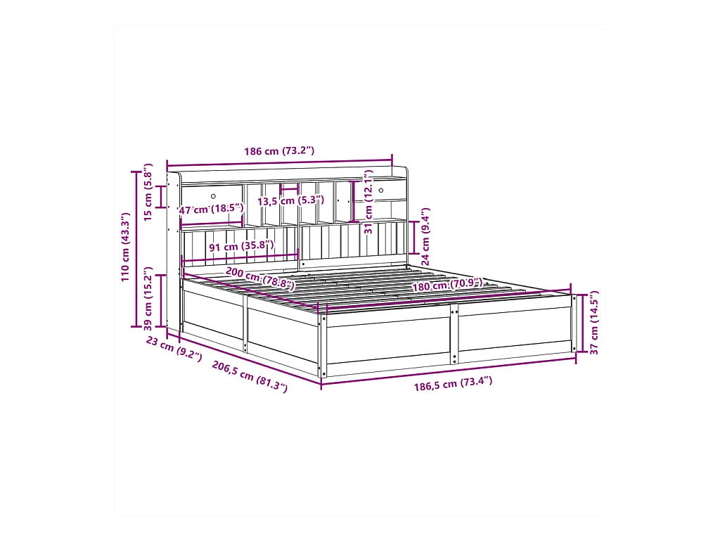 Cadre de lit sans matelas 180x200 cm bois massif de pin