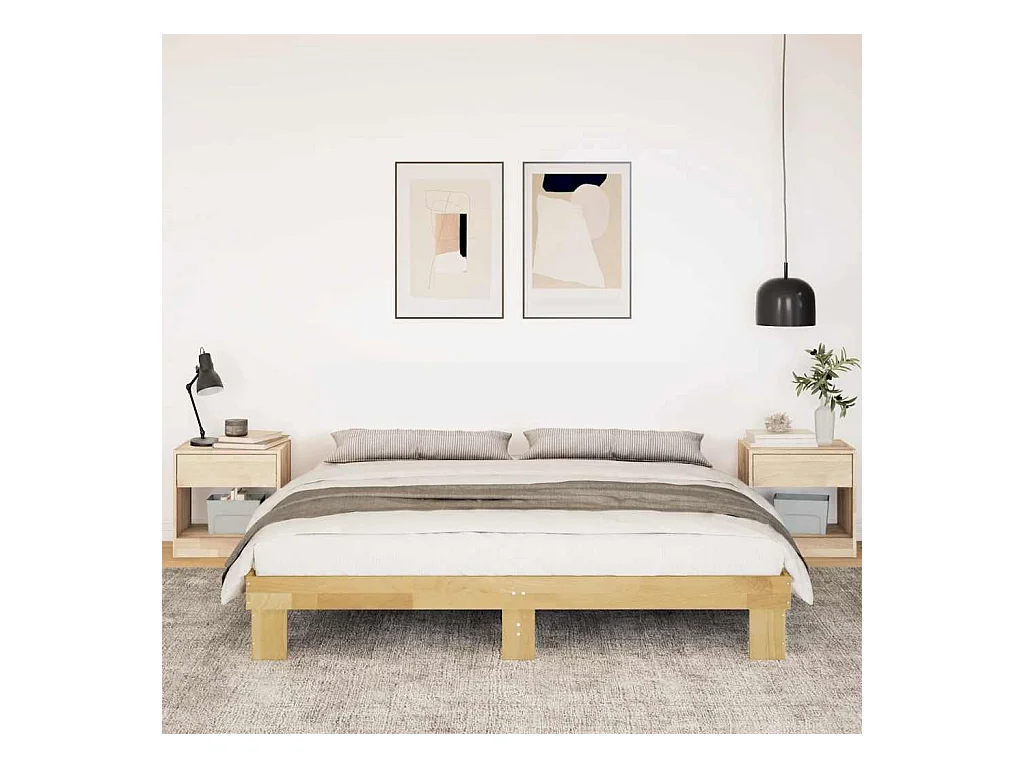 Cadre de lit sans matelas 200 x 200 cm en bois massif de chêne