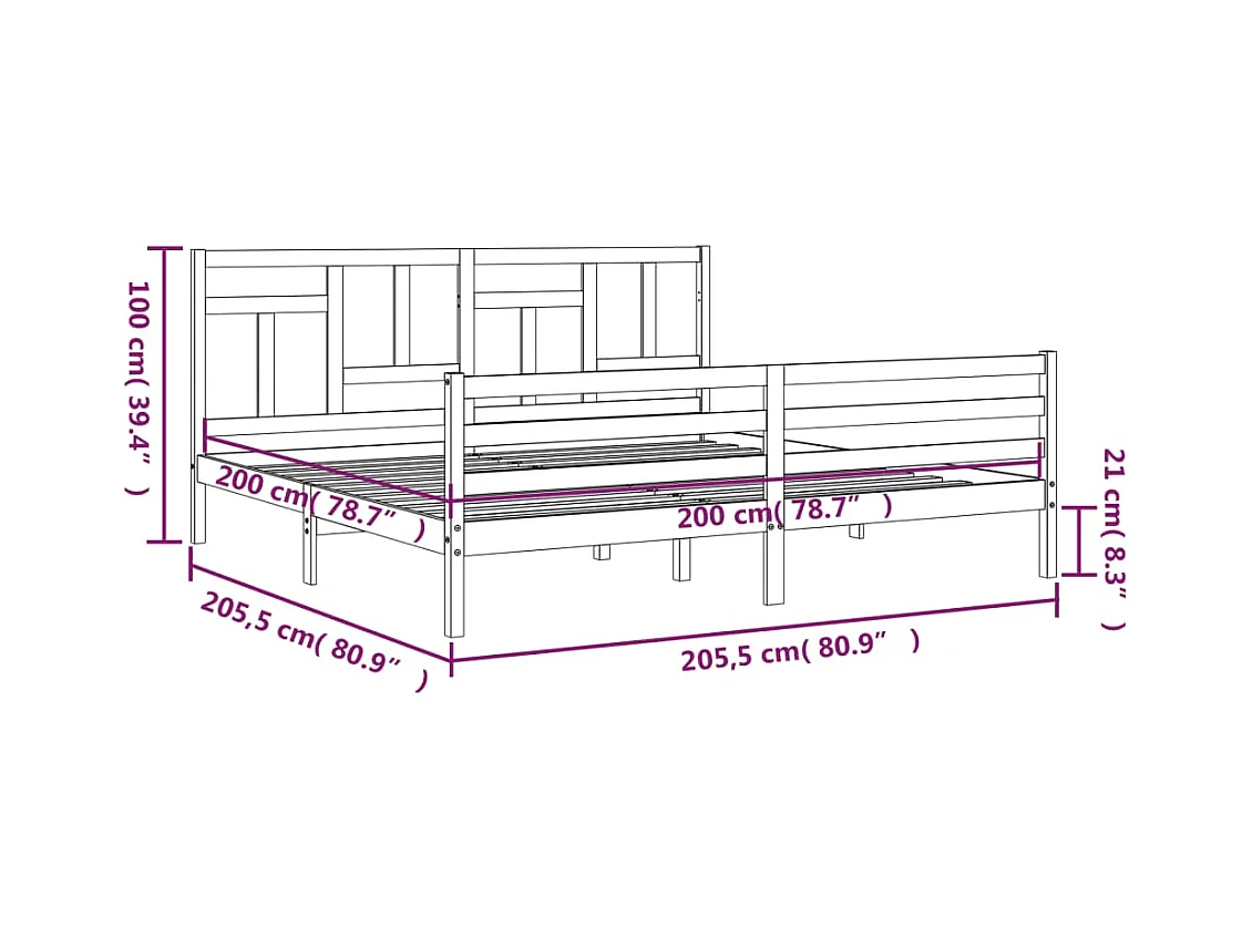 Lit-200x200 cm + tête de lit bois massif HOQW80100