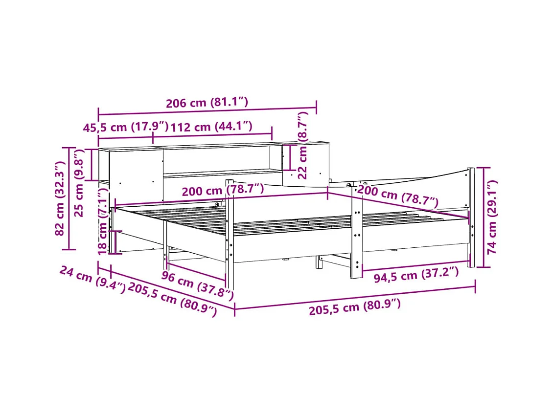 Cadre de lit sans matelas 200x200 cm bois massif de pin