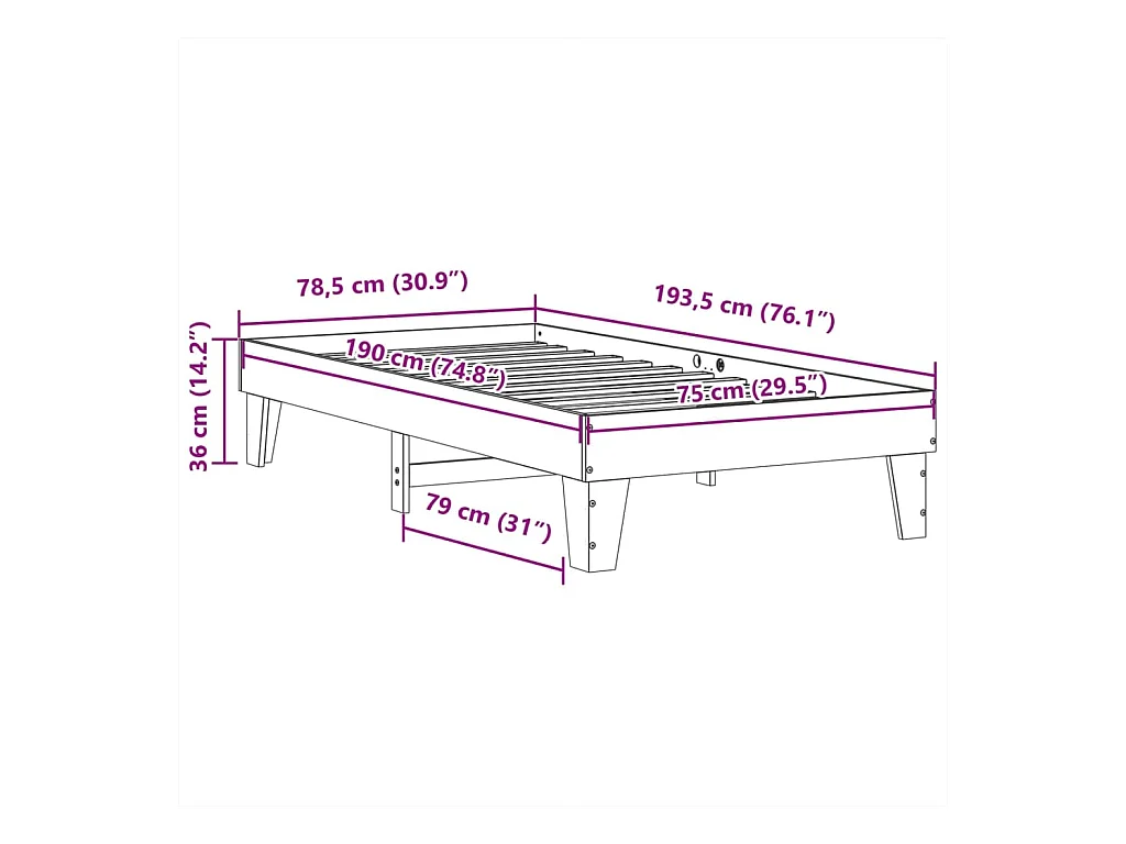 Cadre de lit sans matelas 75x190 cm bois de pin massif