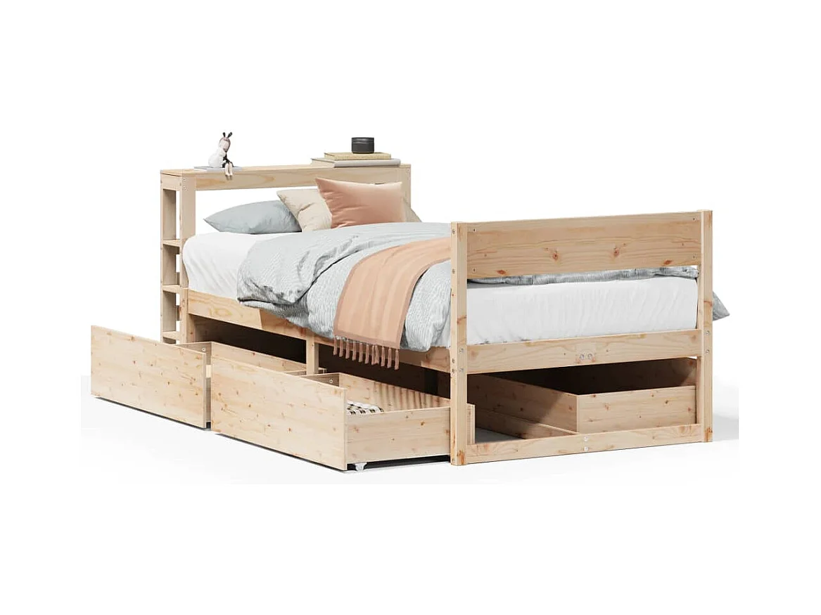 Lit bibliothèque sans matelas 75x190 cm bois de pin massif