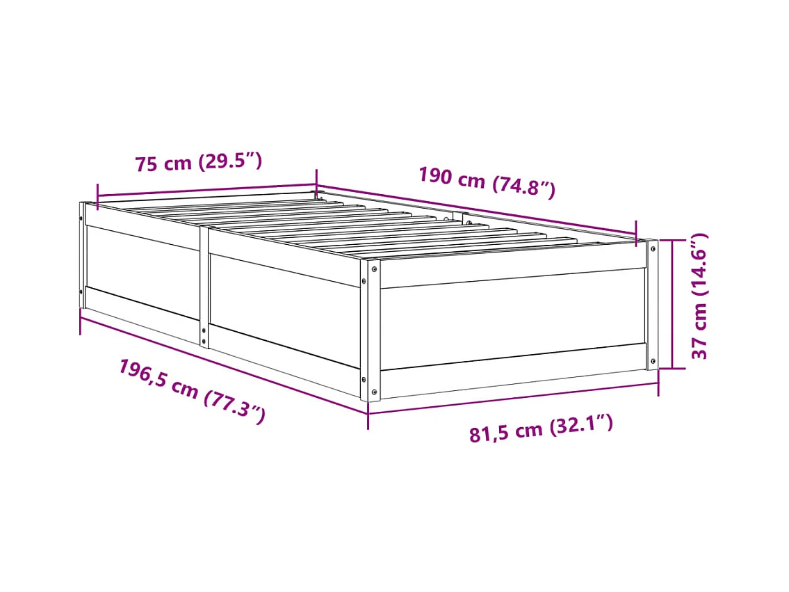Cadre de lit sans matelas 75x190 cm bois de pin massif