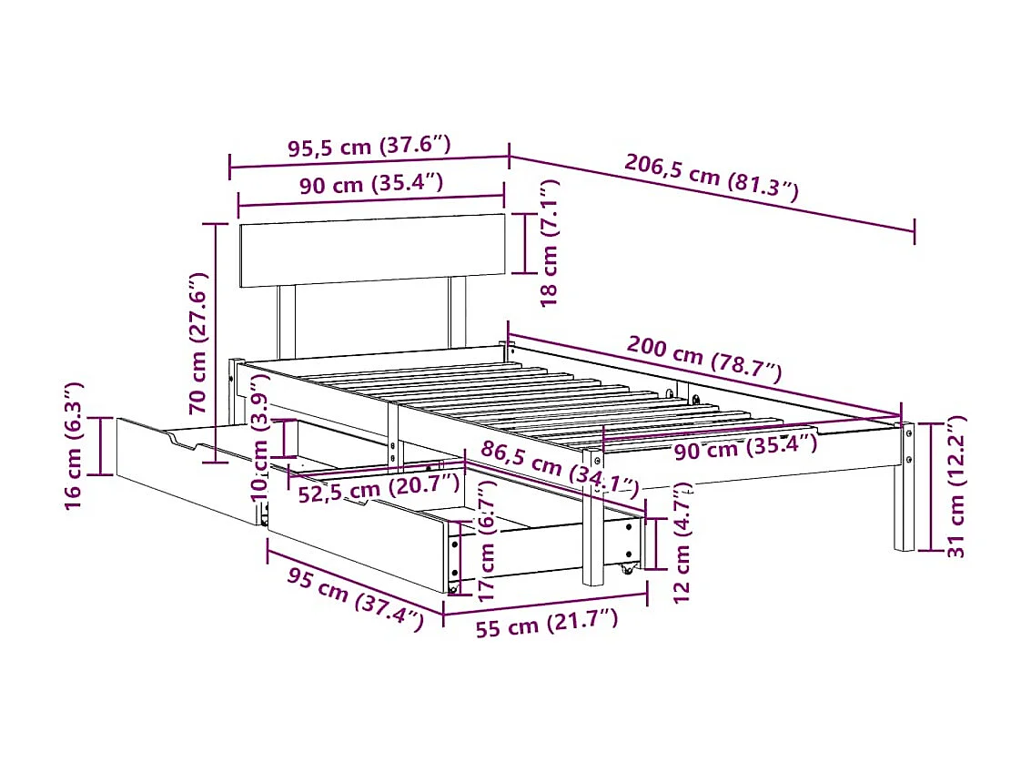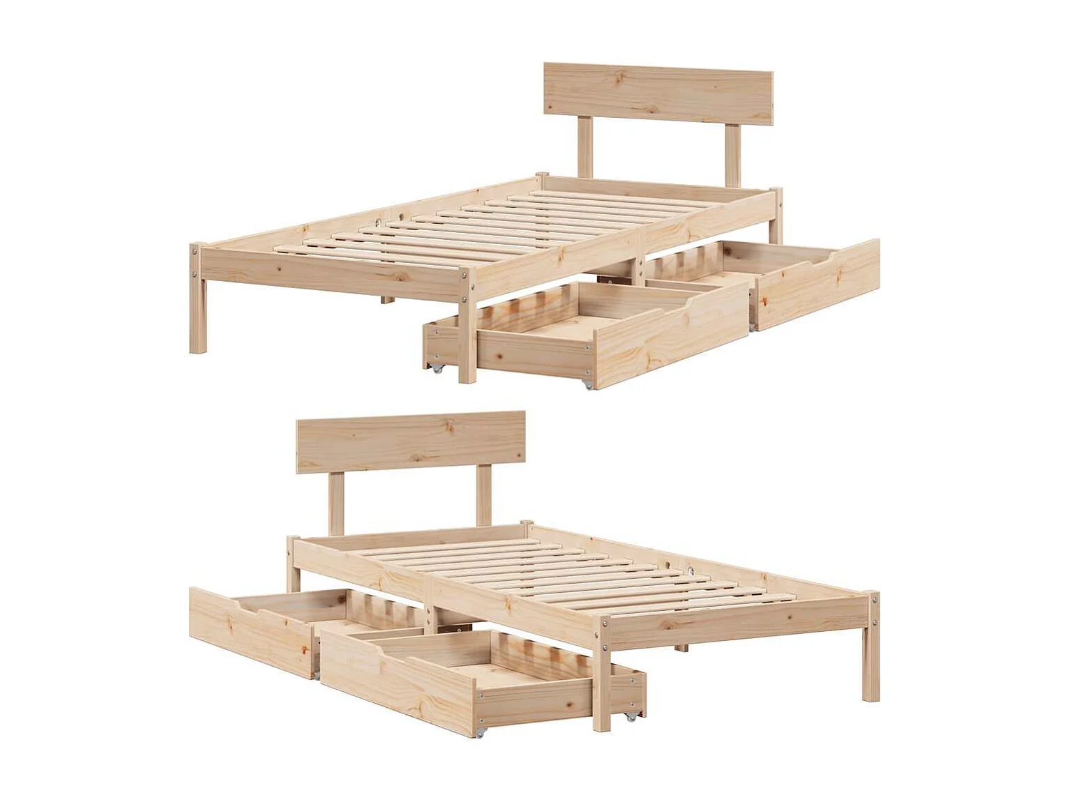 Cadre de lit avec tiroirs 90x200 cm bois de pin massif