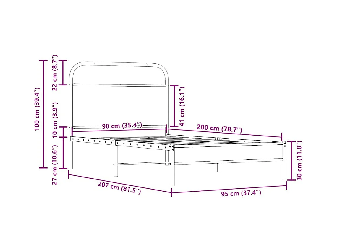 Cadre de lit sans matelas chêne fumé 90x200cm bois d'ingénierie