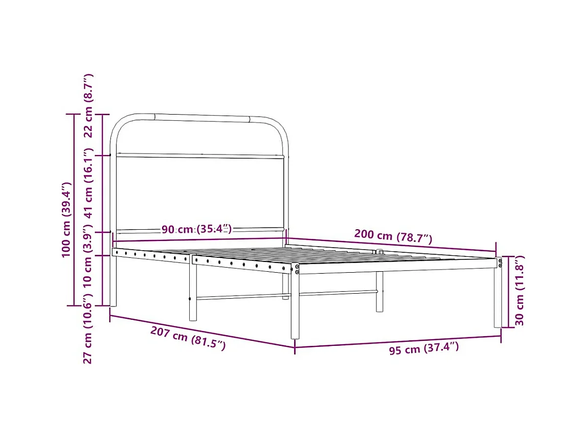 Cadre de lit sans matelas chêne fumé 90x200cm bois d'ingénierie