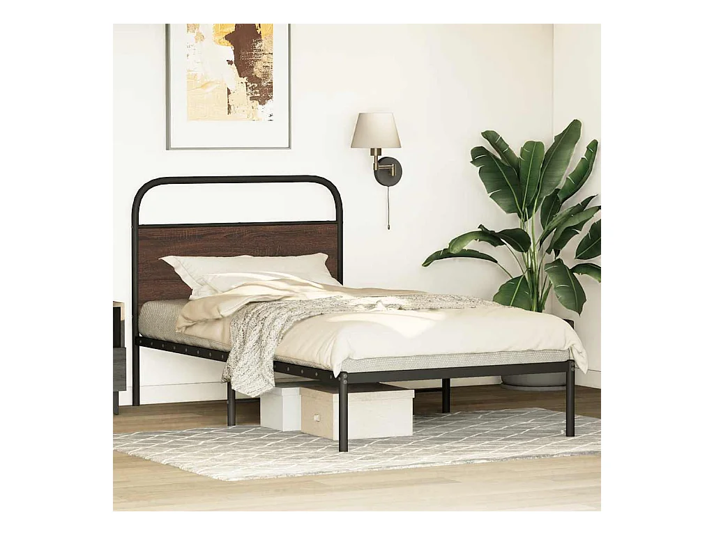 Cadre de lit sans matelas 90x200cm chêne marron bois ingénierie