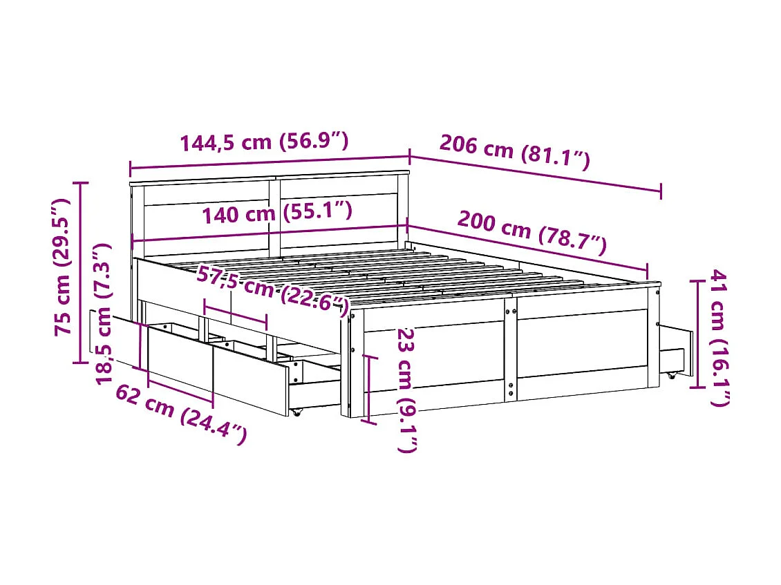 Cadre de lit avec tiroirs sans matelas blanc 140x200 cm