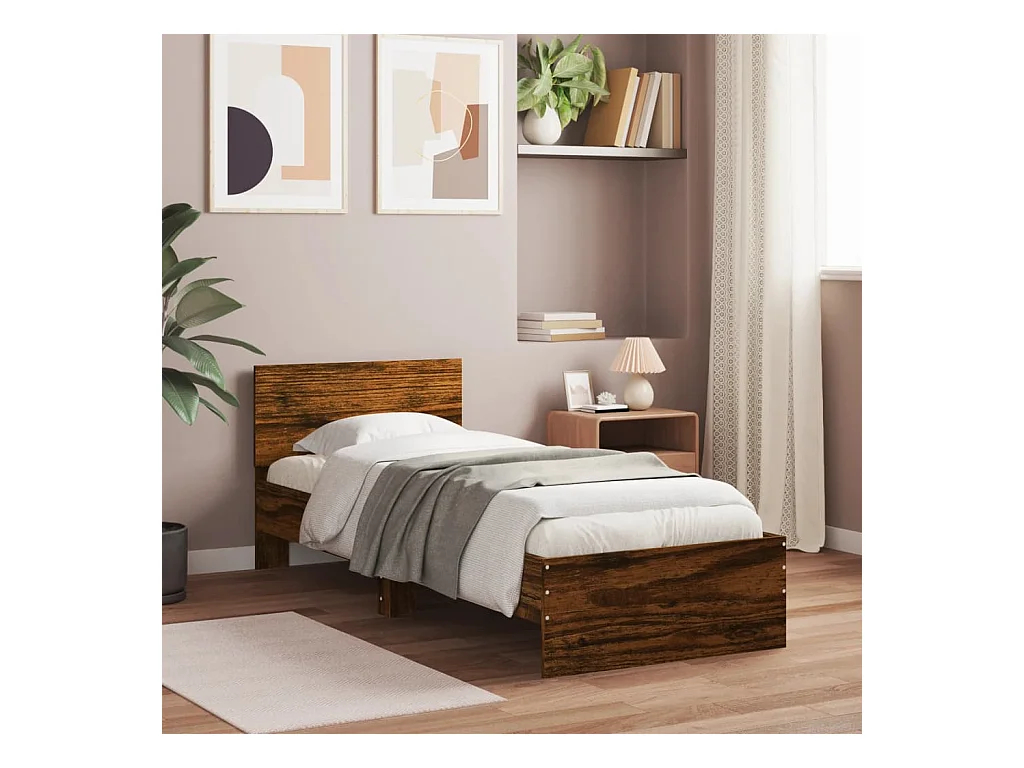 Cadre de lit sans matelas avec tête de lit chêne fumé 90x200 cm